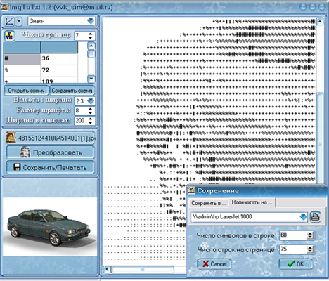 NEW!!! Загружаете в эту программу вашу фотографию, и эта прога выдаёт вашу фотографию в виде символов(а-я, 0-9) Очень удобно для размещения фотографии на стене вашего друга)) |