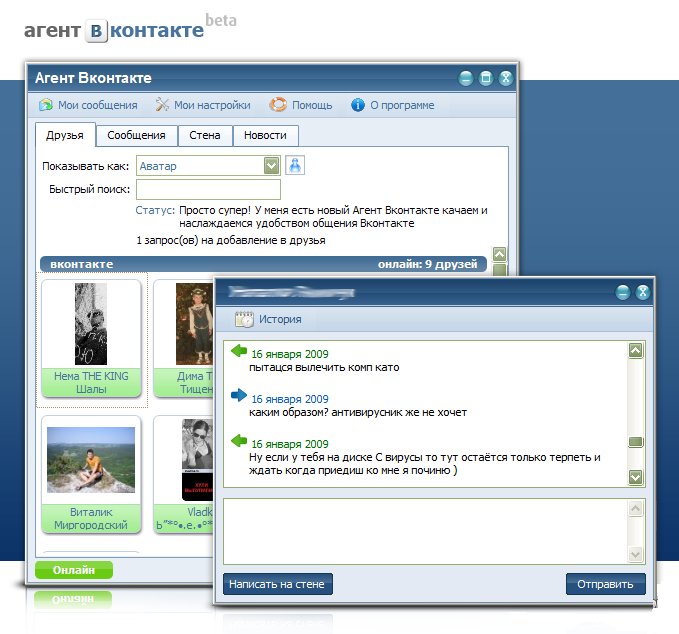 Программа позволяет одним кликом на аватар начать переписку с вашим другом, как